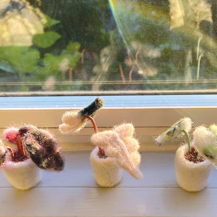 The affordable variegated pink cuprea you always wanted! These super cute 100% felted wool miniature alocasias are in 'self watering pots' and are adorable collector's pieces for aroid enthusiasts. Each is totally unique, hand made, and designed with care.
